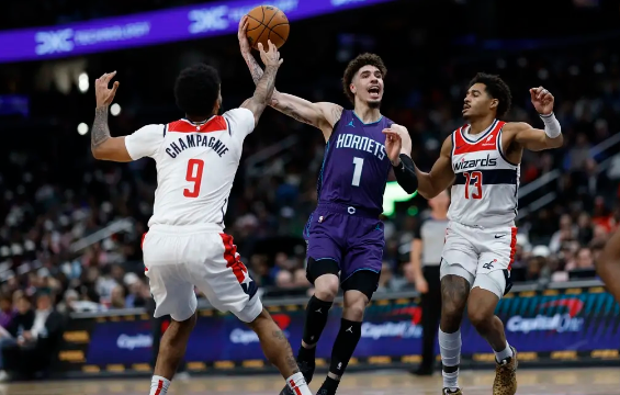 黄蜂队首发:马克-威廉姆斯、拉梅洛-鲍尔、迈尔斯-布里奇斯、约什-格林、小尼克-史密斯