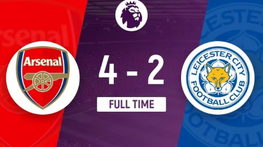英超-阿森纳补时连入两球4-2战胜莱斯特城 积分追平曼城